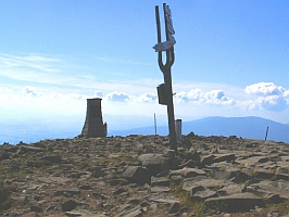 Nahoře oblačno, jinak polojasno, viditelnost asi 60 km. Vrchol má vysokohorský ráz, v severním úbočí se i přes panující horka nachází malé sněhové pole.