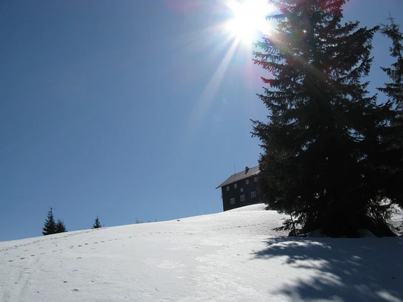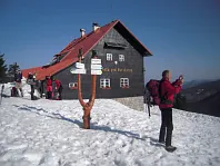 ... začíná na zápraží chaty, u nápisu