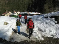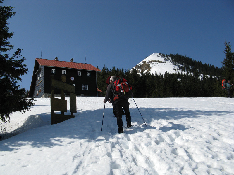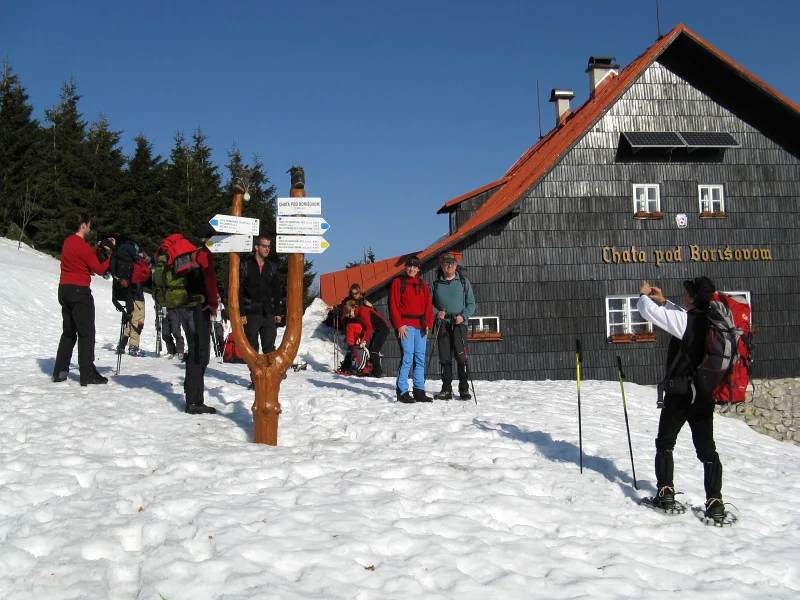 Chata pod Borišovom ,rázcestie - zde se dočasně dělíme v poměru 7:1