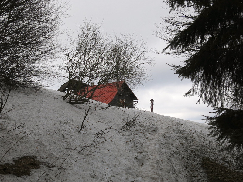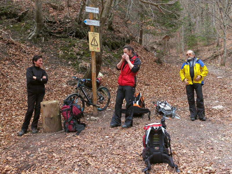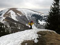 Terén všeho druhu: tráva klouže, mokrý sníh nenese a čeká nás strmé bláto