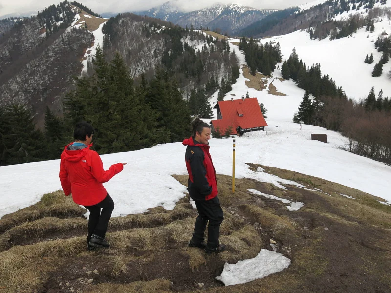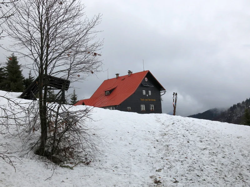 12:30. První spatření chaty