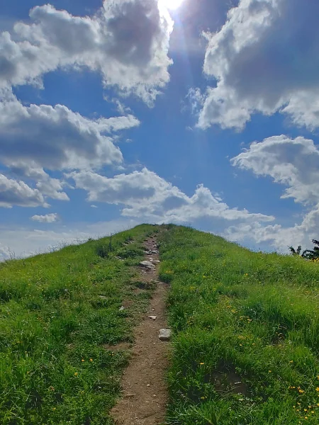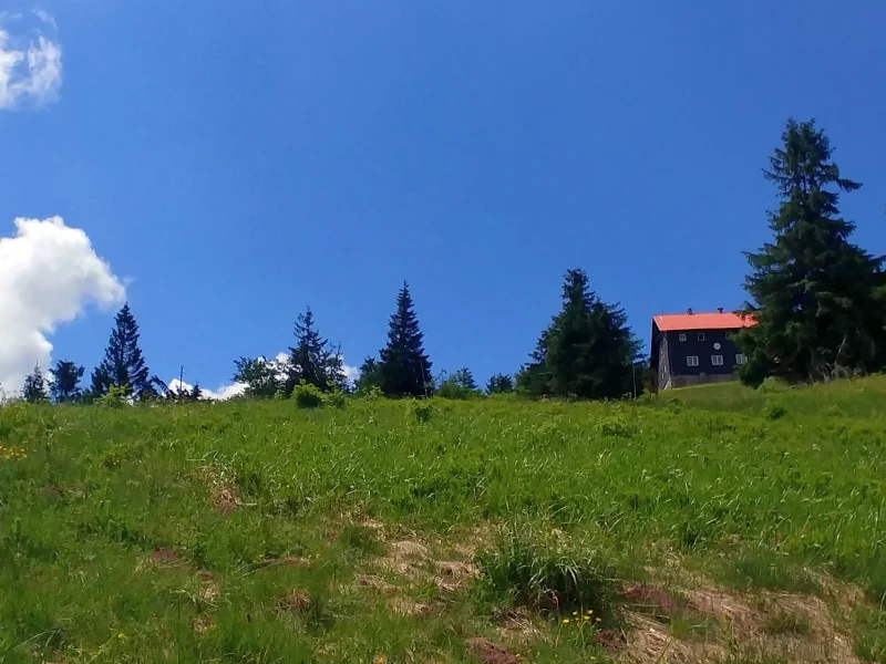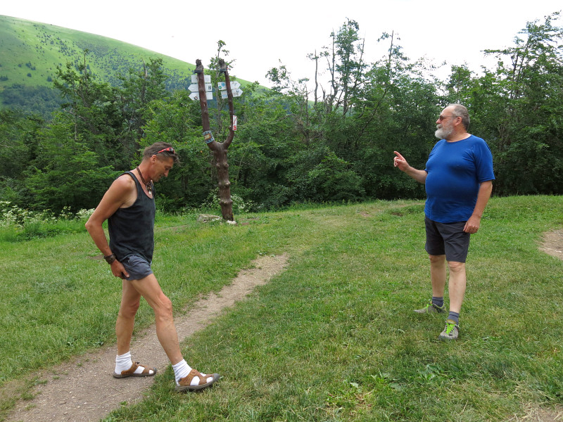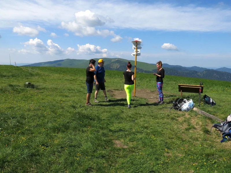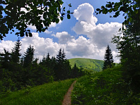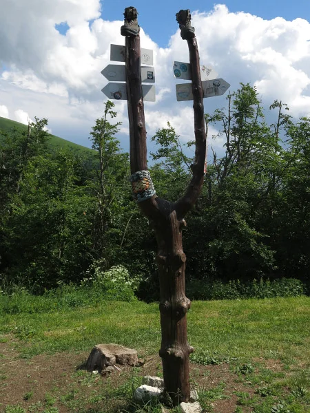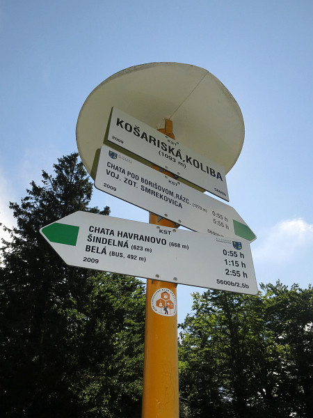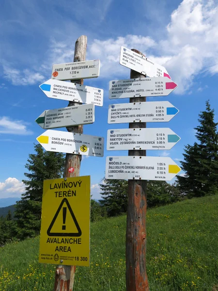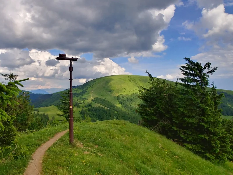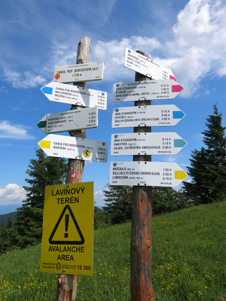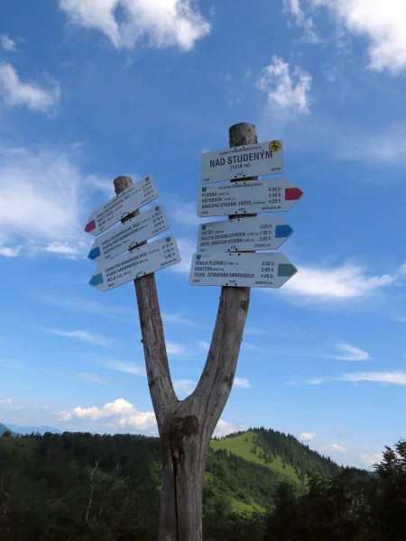 Rozcestí Nad Studeným. Zde začíná travers Ploskej na Ostredok