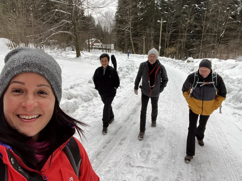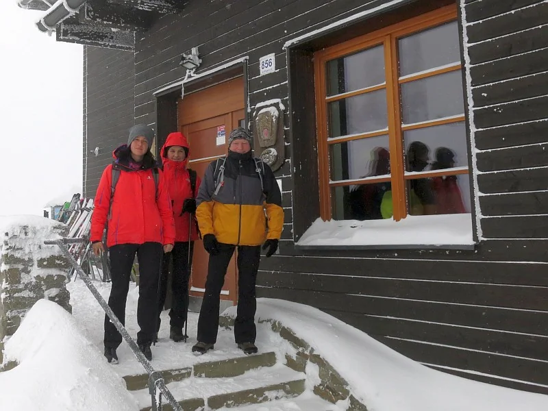 Před chatou napravujeme opomenutí vrcholové gratulace. A "fčil dom"