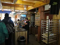 Zde si vyzvedněte jídlo. Budete vyzváni rozhlasem, a to i na toaletě
