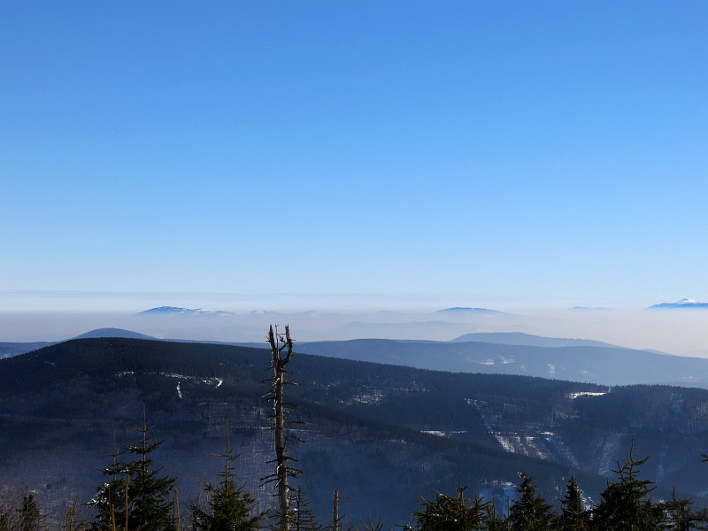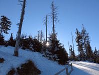 Za Travným na obzoru Skrzyczne 1257 m, zcela vpravo Babia hora
