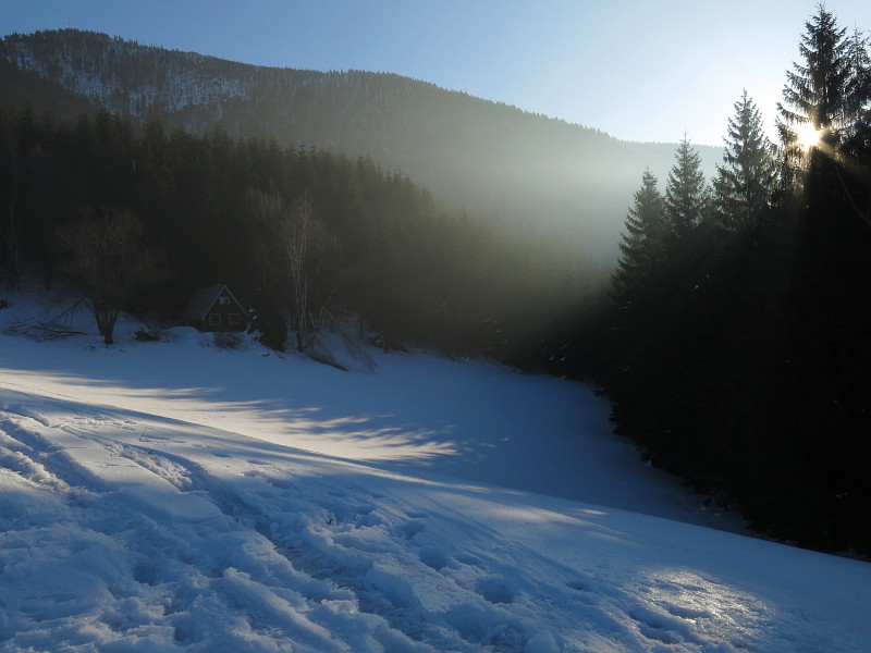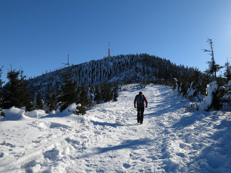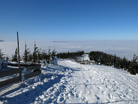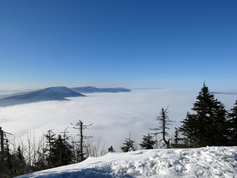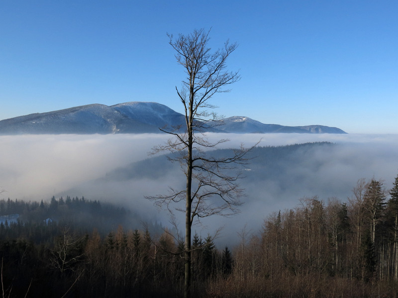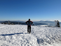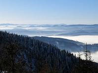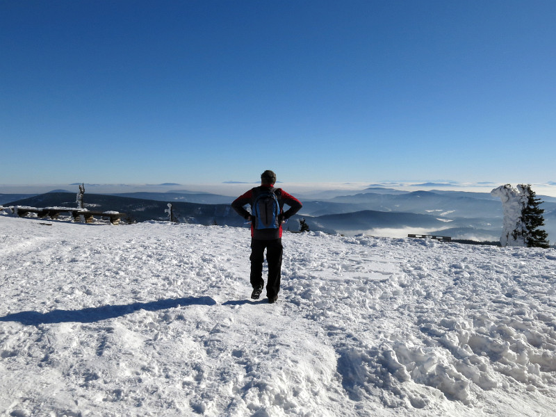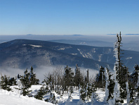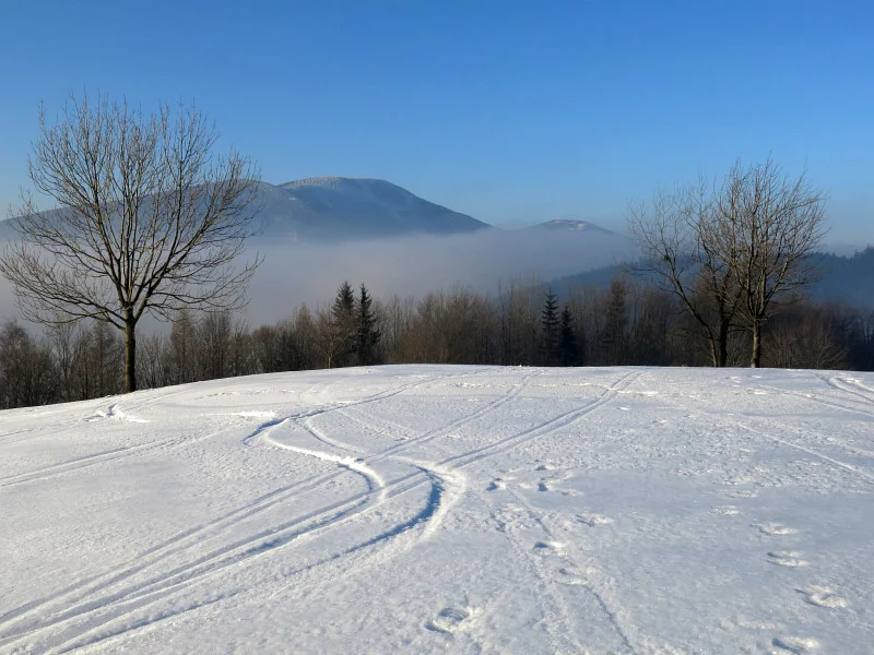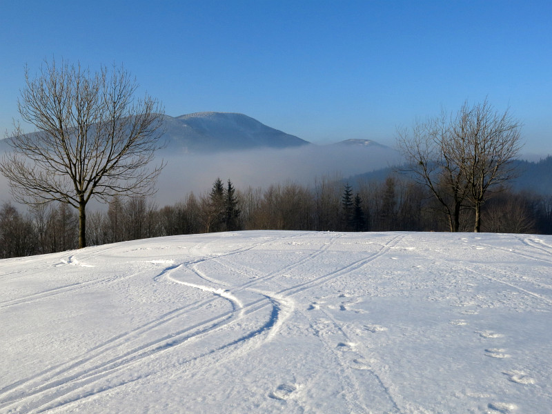 Vpředu Travný, na obzoru Skrzyczne, Barania góra, Babia hora a Pilsko