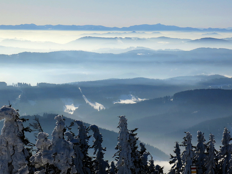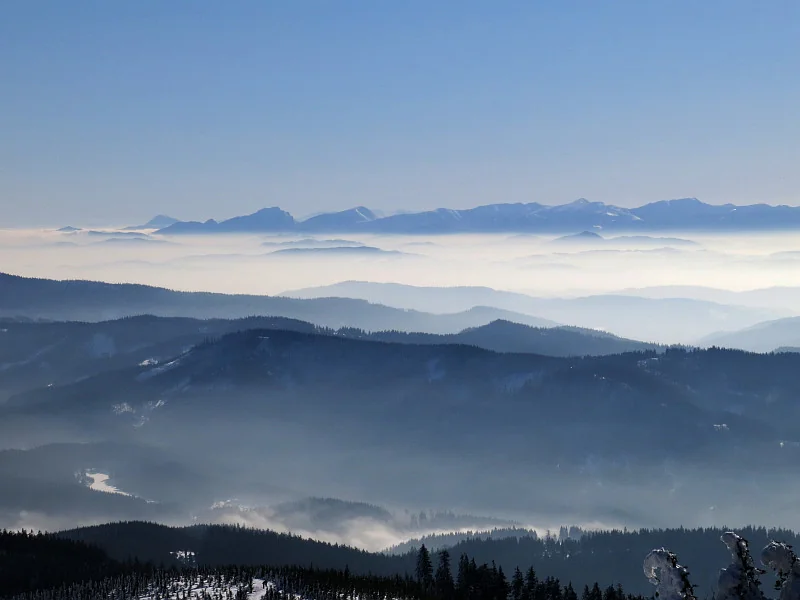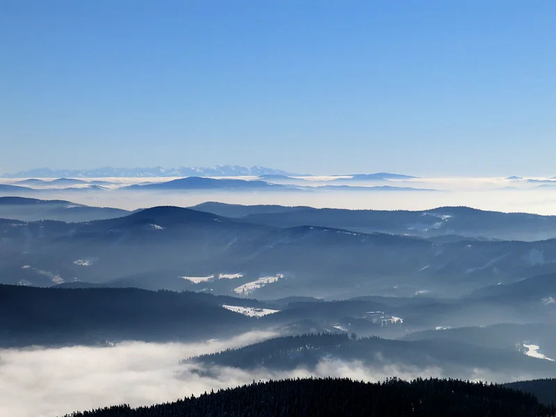 Beskydy, Javorníky, Lúčanská Fatra, Strážovské vrchy, zcela vzadu Vtáčnik