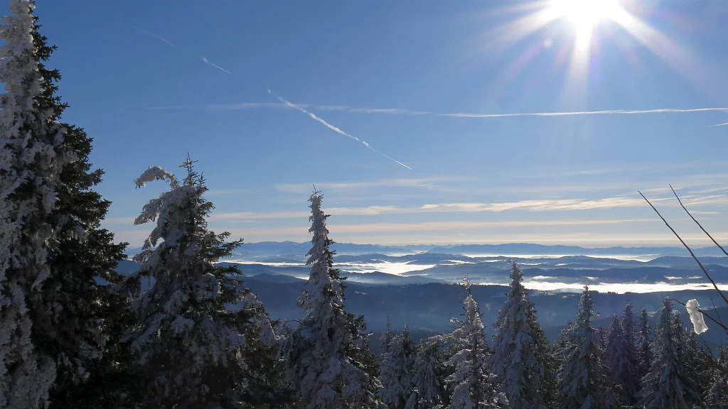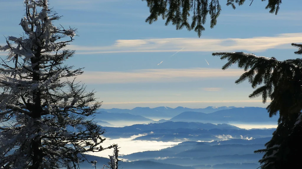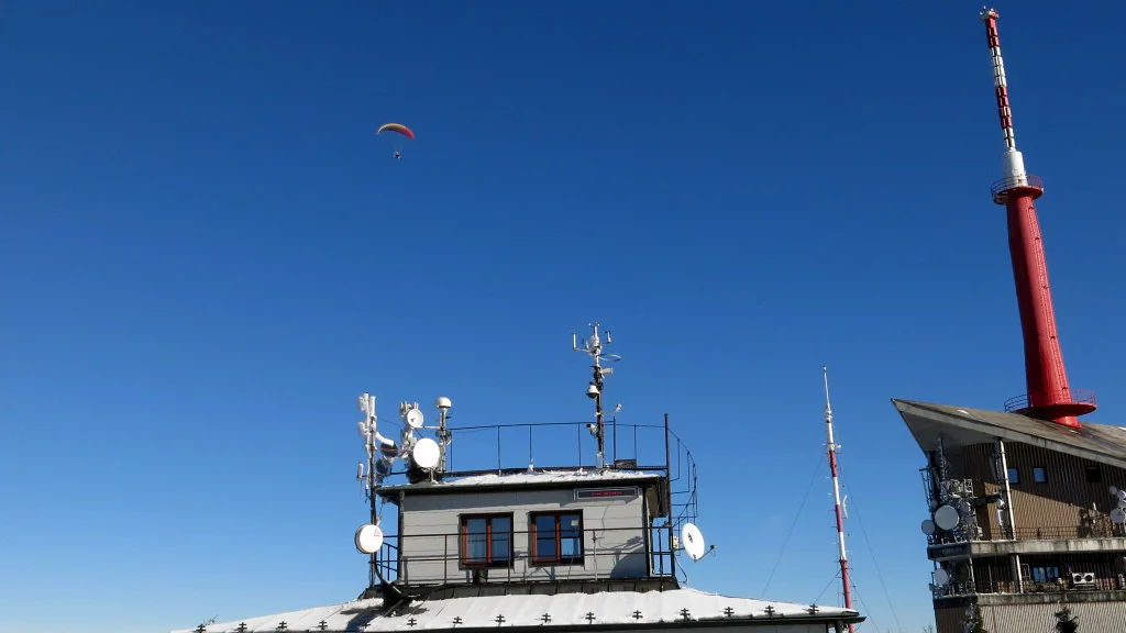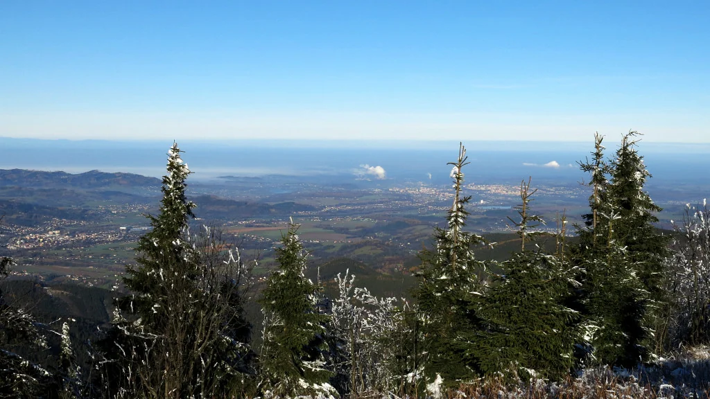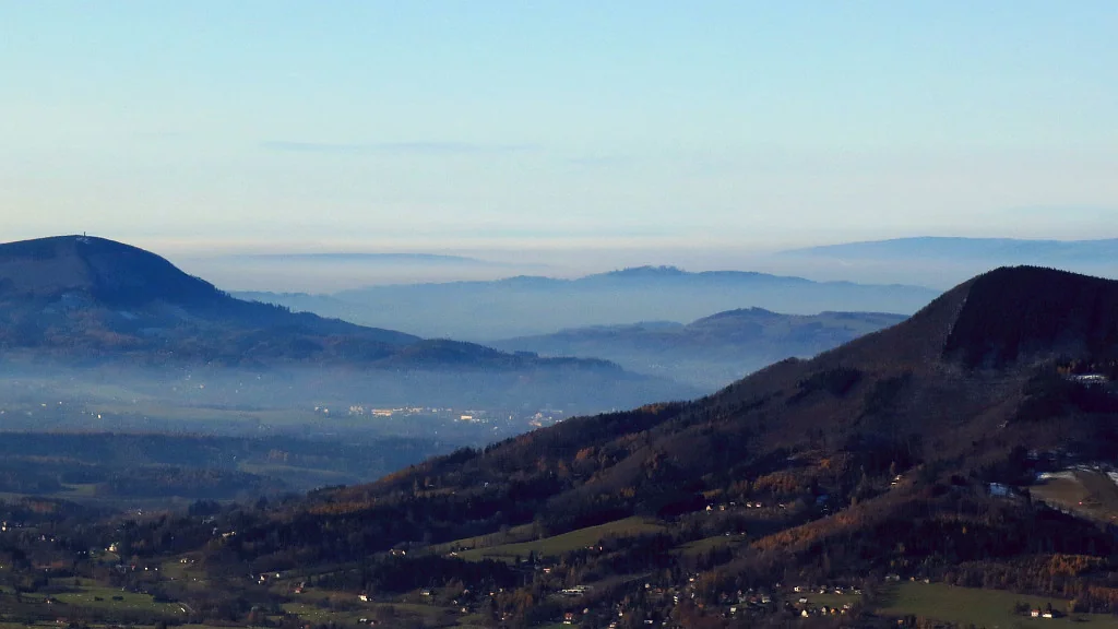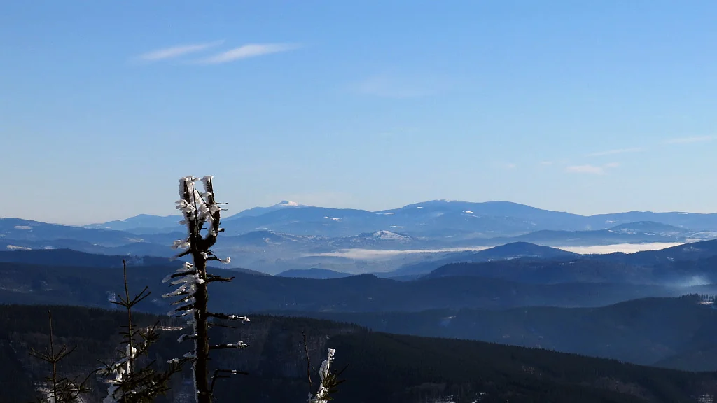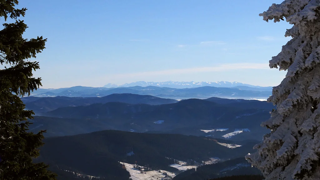 Králova hola, 145 km vzdálená. Viz na obzoru, mírně vlevo od středu
