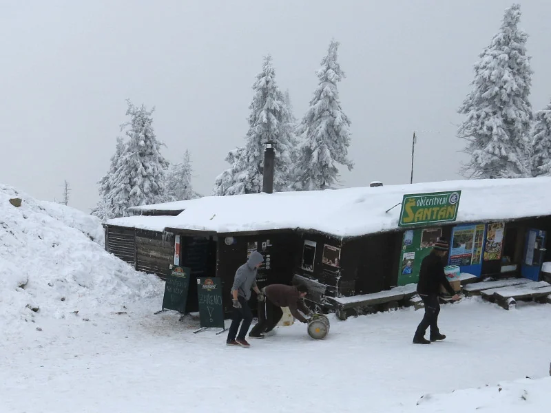 Tatranská vyhlídka s pozůstatky víkendového zapíjení Šantánu a ...