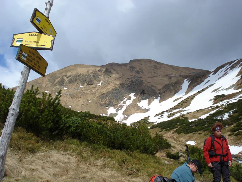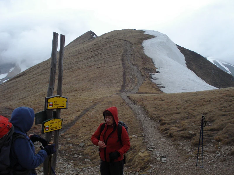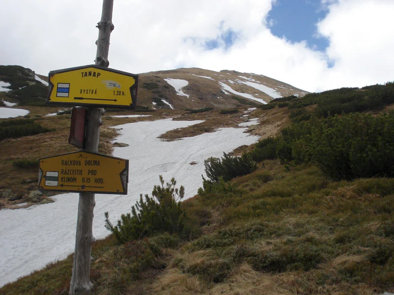 Rázcestie pod Klinom. Do chaty ještě 2 hodiny