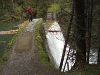 Račkova přehrada, svědek vydatnosti dopoledního deště, přetéká