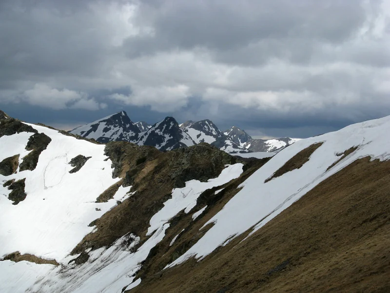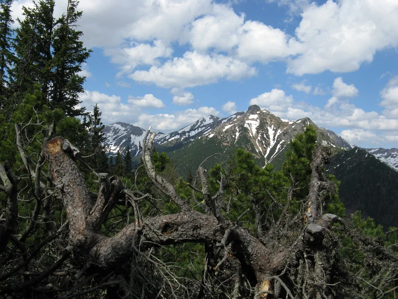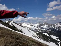 Tři Barance, první jsou Mládky. Čtvrtý, a to hlavní vrchol zatím nevidět