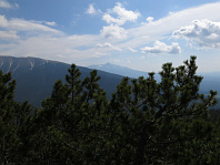 Nad sněhem málo patrný Choč, zcela vpravo zřetelný Sivý vrch