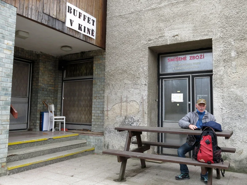 Majitel bufetu je frajer. Ač otvírá až za hodinu a půl, obslouží nás venku