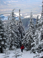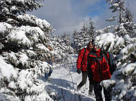 Vrchol se blíží, vzadu Ondřejník a jeho Skalka
