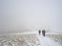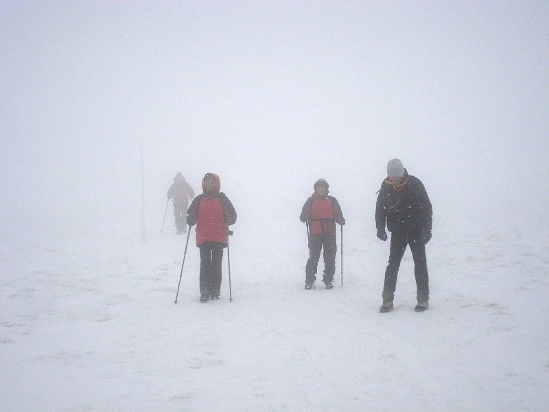Viditelnost 20 metrů a silný vítr