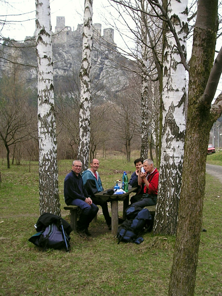 Popíjení zde zakoupených lahváčů na zápraží Chaty pod Suchým