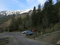Lavička 555 metrů od chaty.