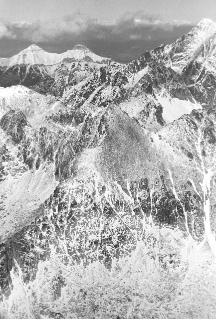 Vlevo vrchol Triumetalu, vpravo Terianská