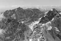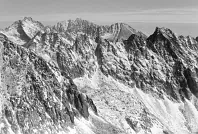 Rysy, Vysoká, Zadný Gerlach, Gerlach. Vpředu Štrbský štít