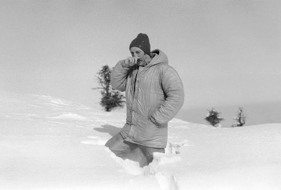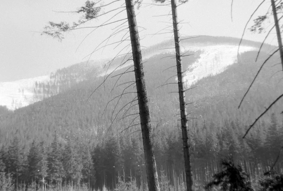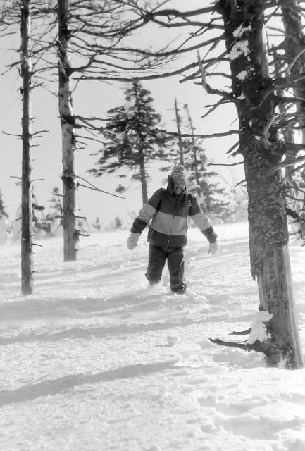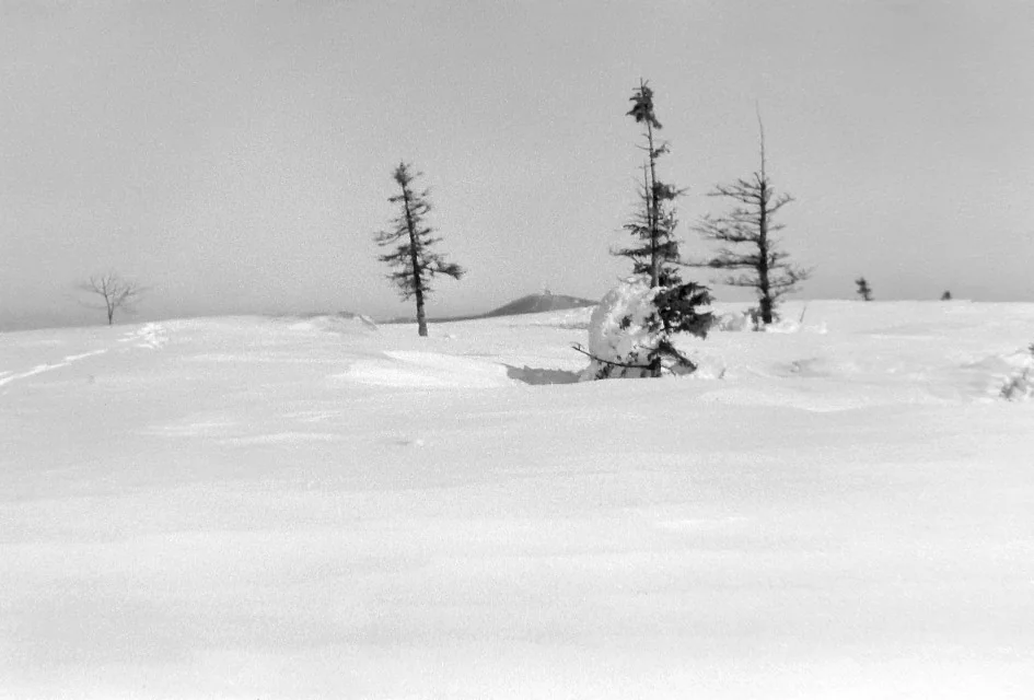 Na Smrku. Vzadu Lysá, už 4 roky bez Bezručovy chaty