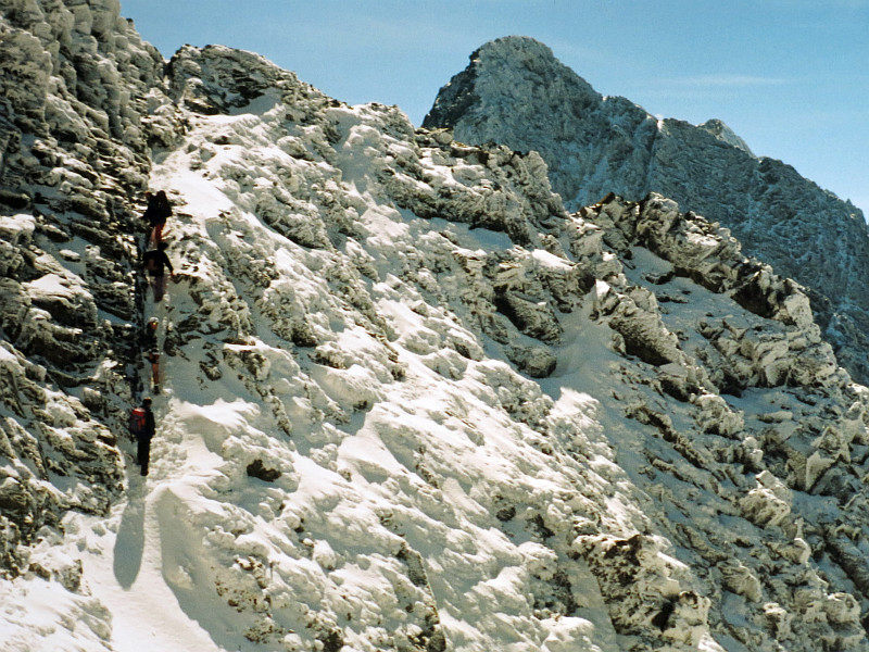 Sestup z Jahňacího štítu a současně výstup ke Kolovému priechodu