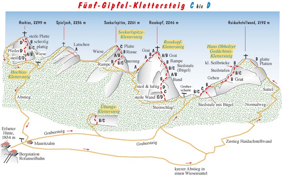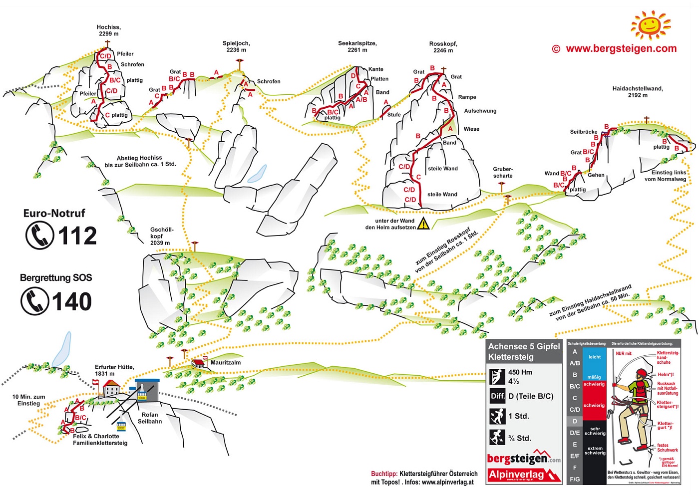 Achensee "Fünf Gipfel Klettersteig" - topo
