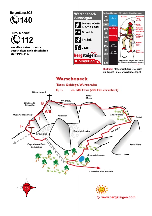 Warscheneck Südostgrat Klettersteig - topo