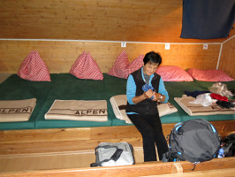přináší úsporu 6 €. Chatařka Doris nám přiděluje prostorný Matratzenlager No.1 pro 18 osob. Jsme v něm zcela sami, na rozložení zásob a výstroje máme místa