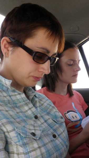 Broňa a Adéla si krátí dlouhou cestu četbou