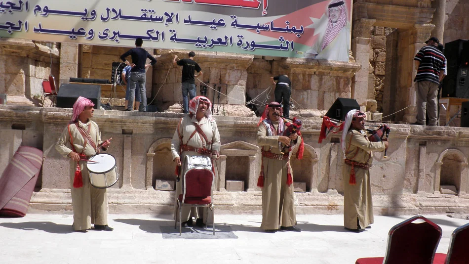 Ráno ve městě Jerash, známém svým letním festivalem kultury a umění