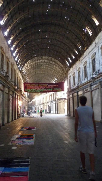Nyní již rušná Souq al-Hamidiyah se střechou prostřílenou r. 1917 a 1925