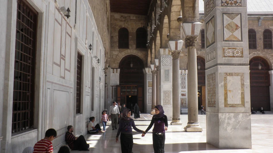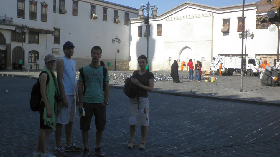 Náměstí před Umayyovskou mešitou bez vyznavačů islámu. Tedy téměř