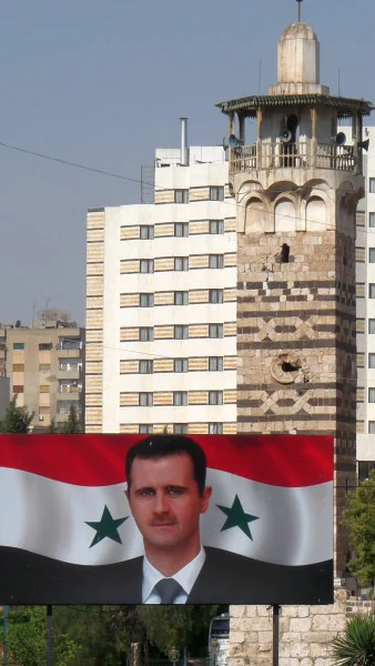 ... vítá nás "Asadovic" tandem, otec Háfiz a syn Bašár