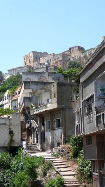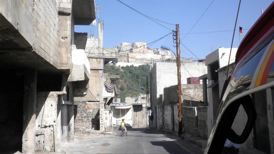 Qalaat al-Husn a jeho podhradní vesnice ...