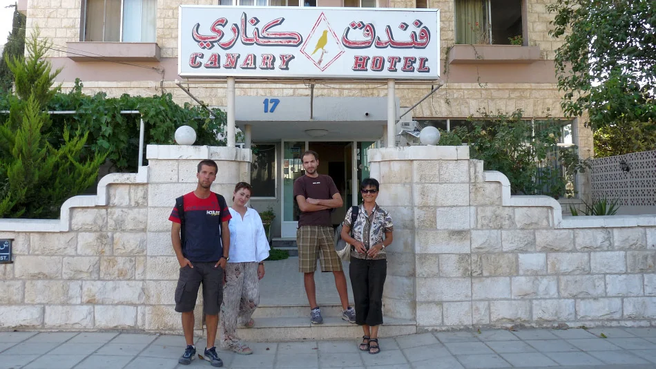 Amman, hotel Kanárek. Snad budou ptáci v noci zpívat potichu