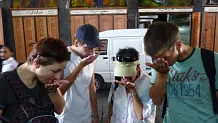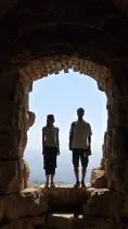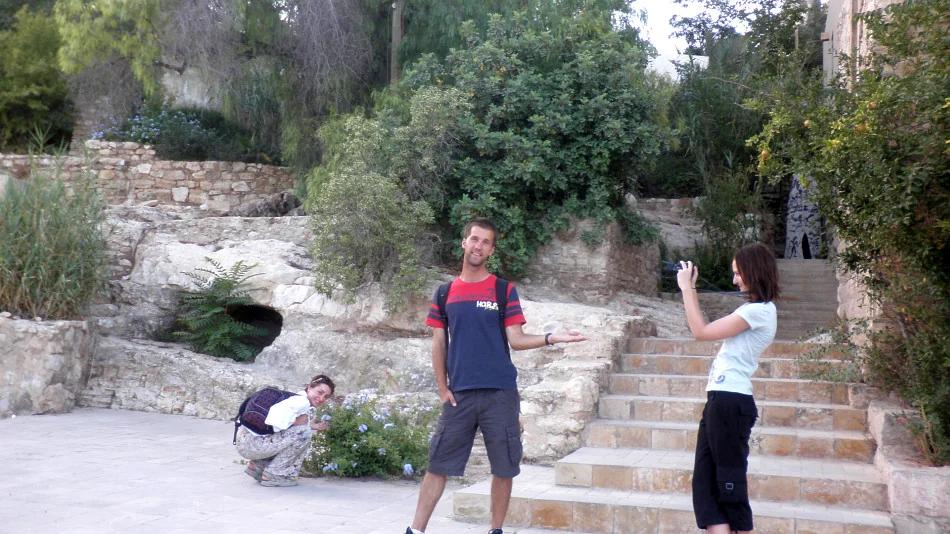 Hana a Adéla s úsměvem u hrobky hlavy Jana Křtitele