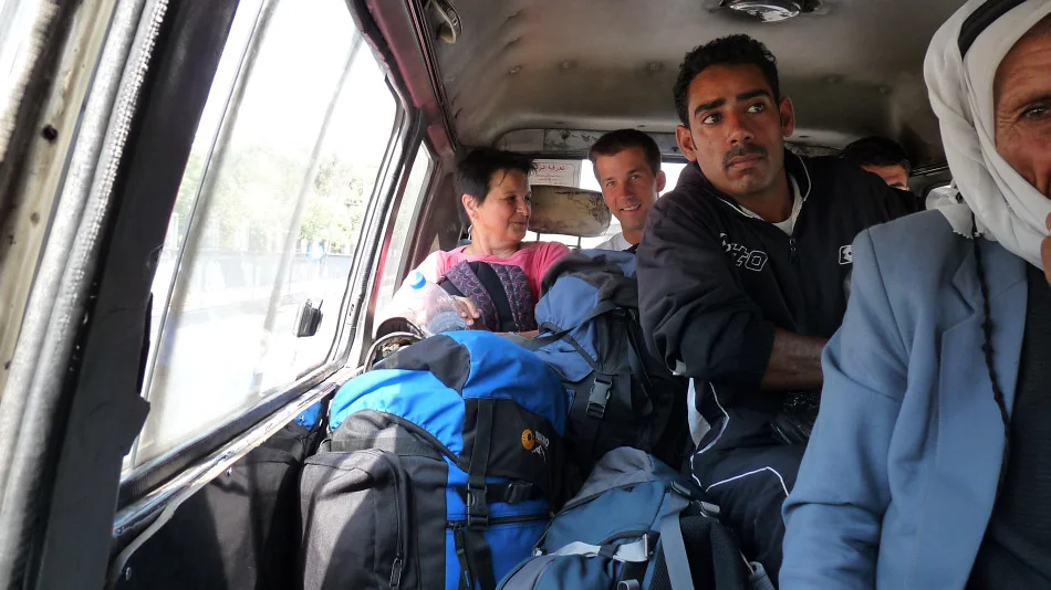 Na předměstí Damašku přestupujeme do typicky žlutého městského taxi