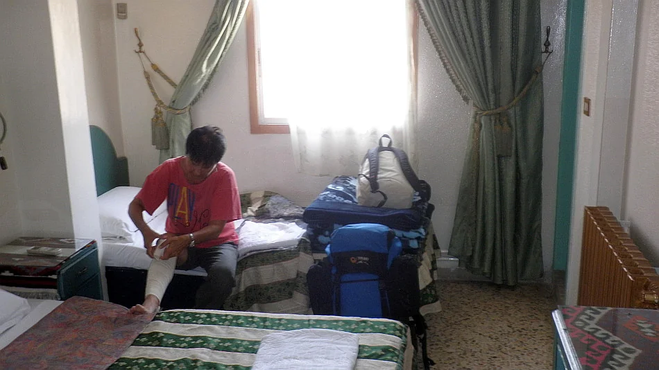 Palmyra, hotel al Nakheel. Stále mě trápí má nešťastná noha