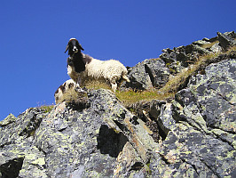 ve strmých trávnících nabírá rychle výšku. Pozornost budí ovce v roli kamzíků ve výšce kolem
