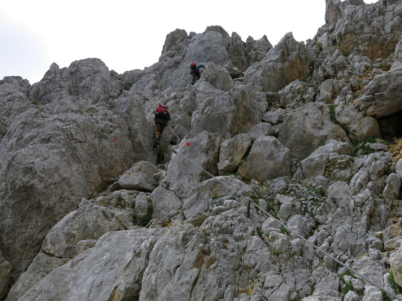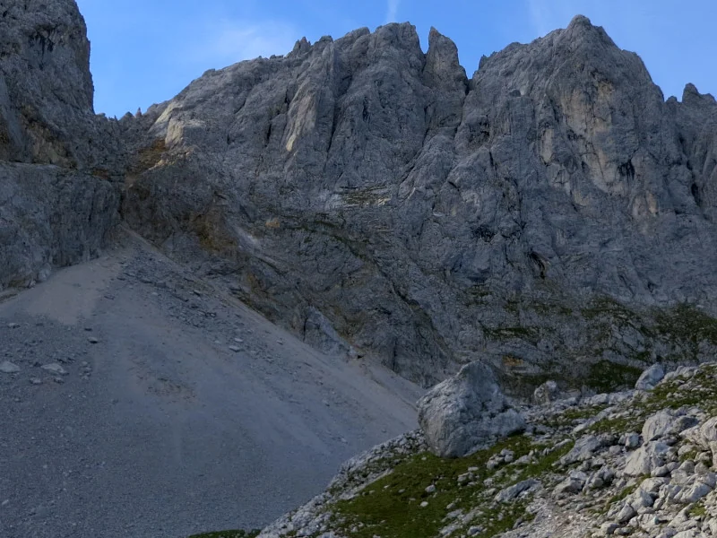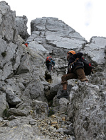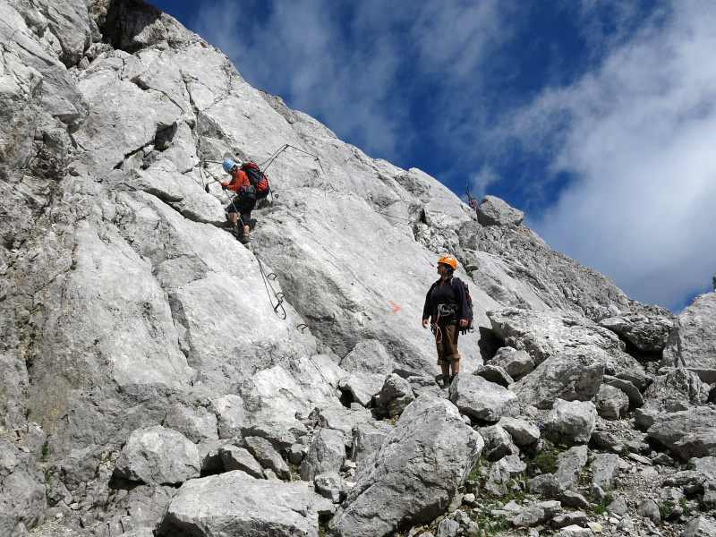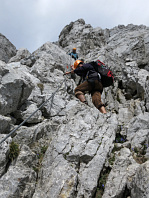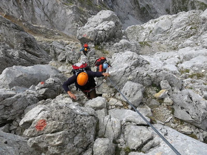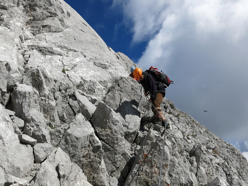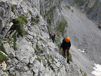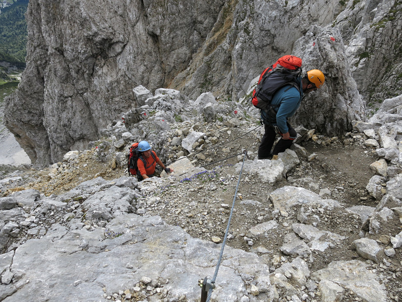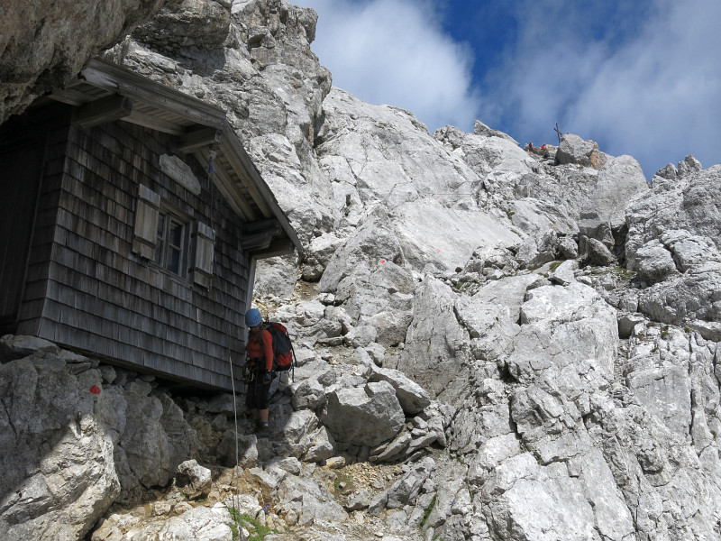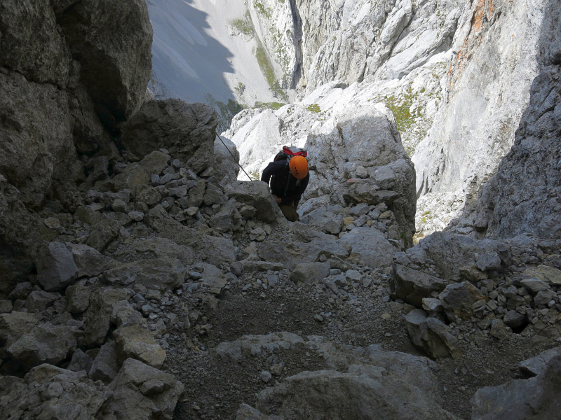 Opouštíme bezpečí Gruttenhütte a míříme lehkovážně na Ellmauer Halt