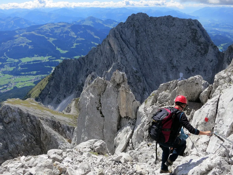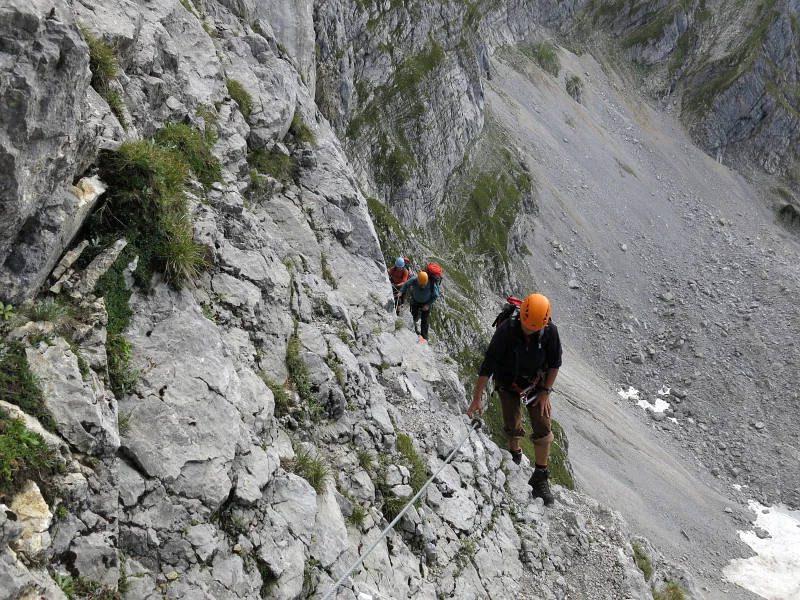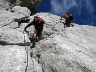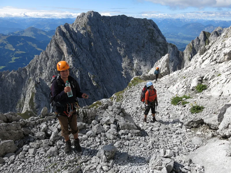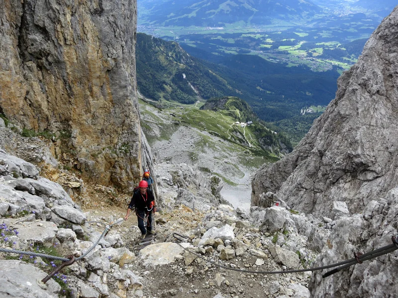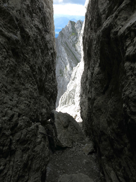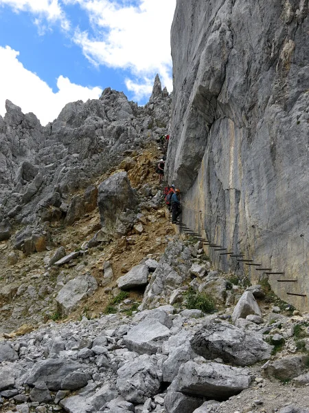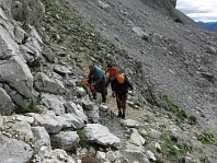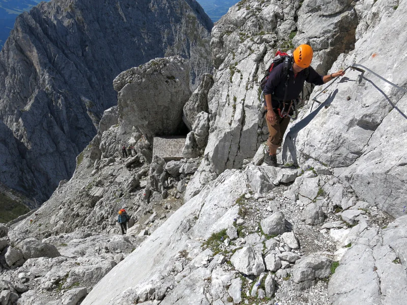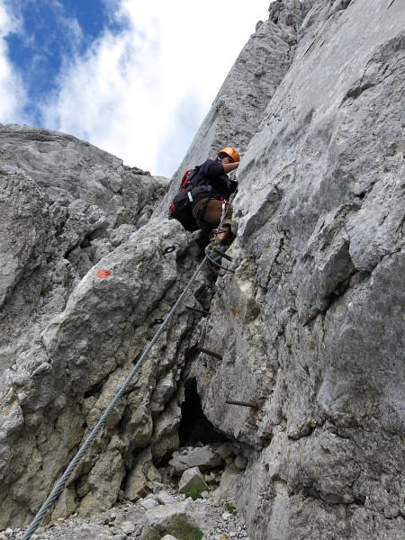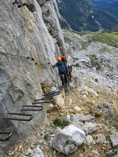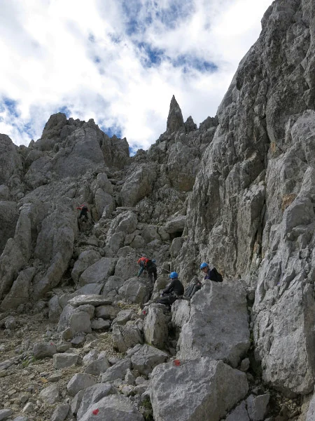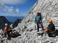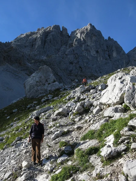 Opouštíme bezpečí Gruttenhütte a míříme lehkovážně na Ellmauer Halt