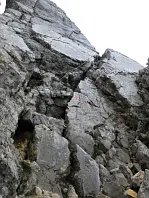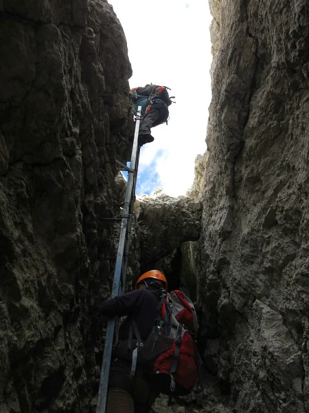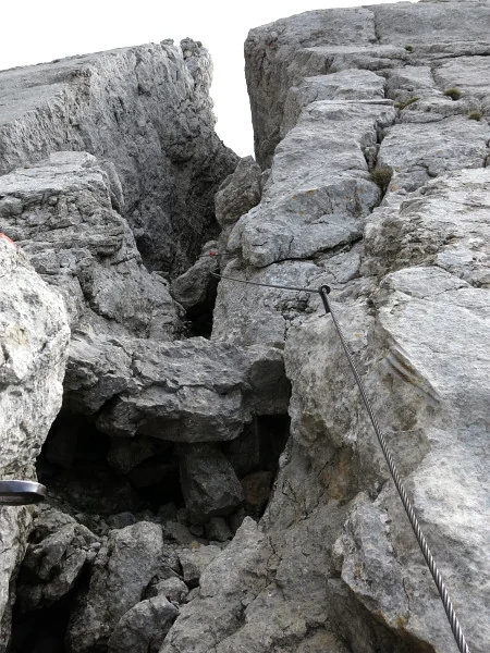 Rozcestí variant B/C. Vlevo žebřík, vpravo spára