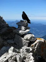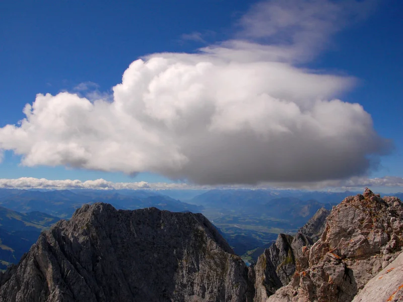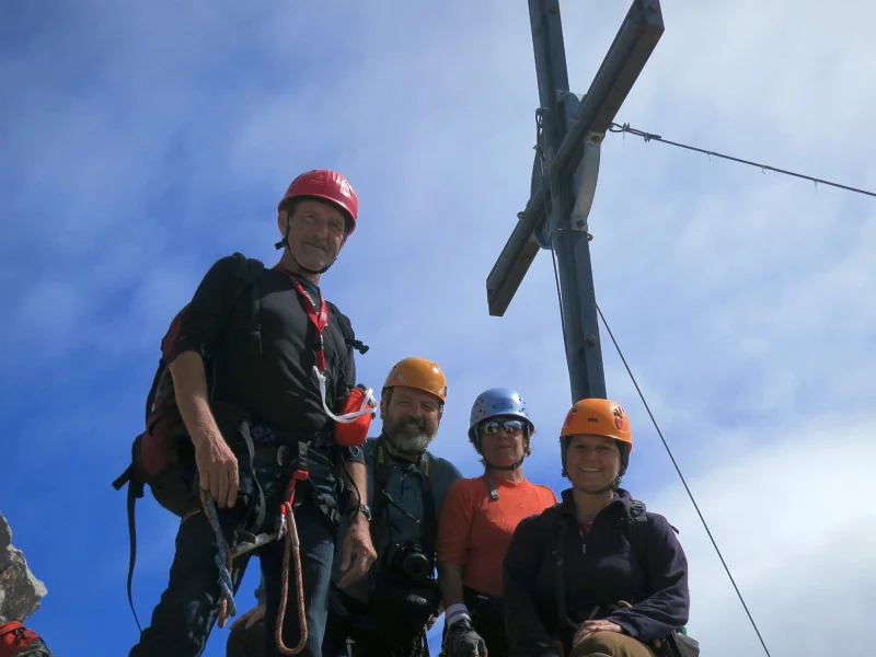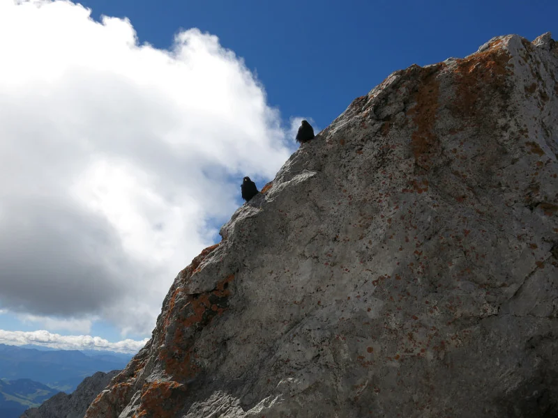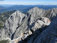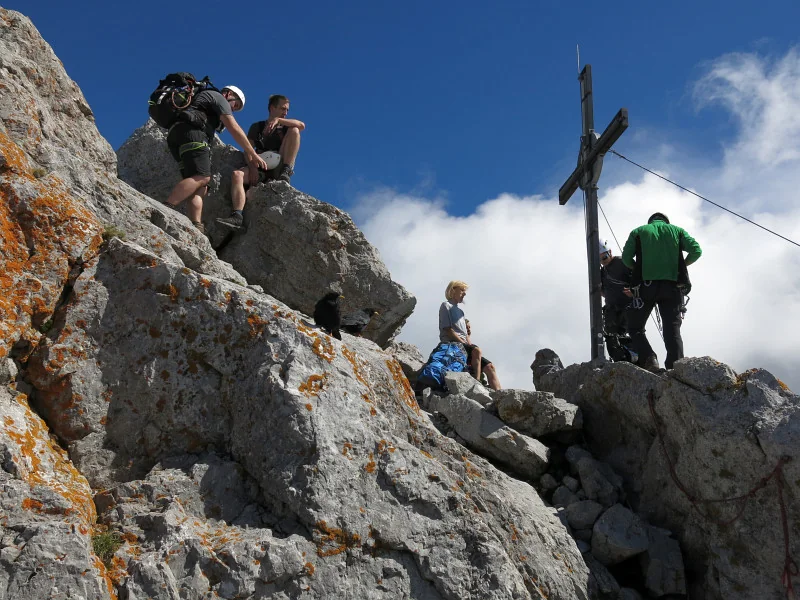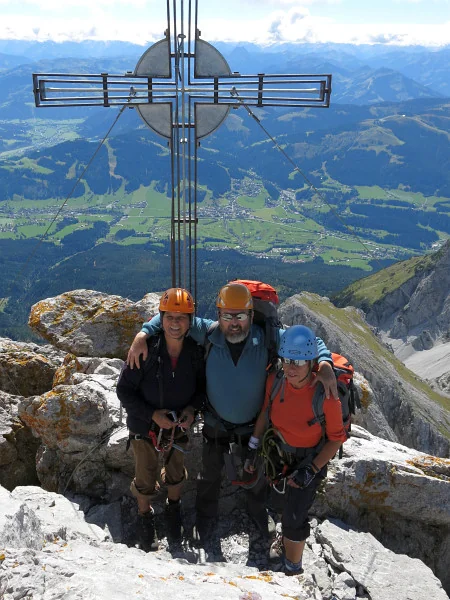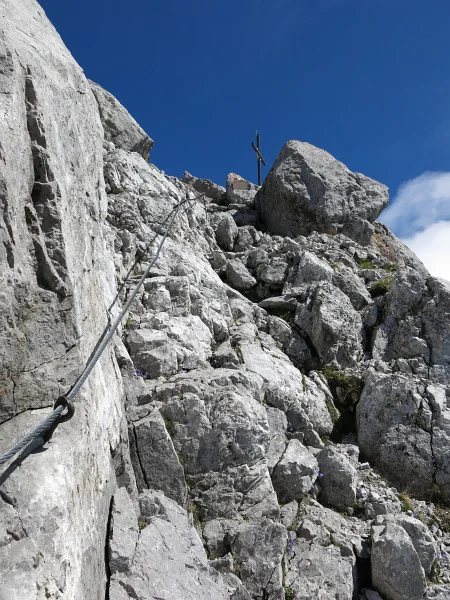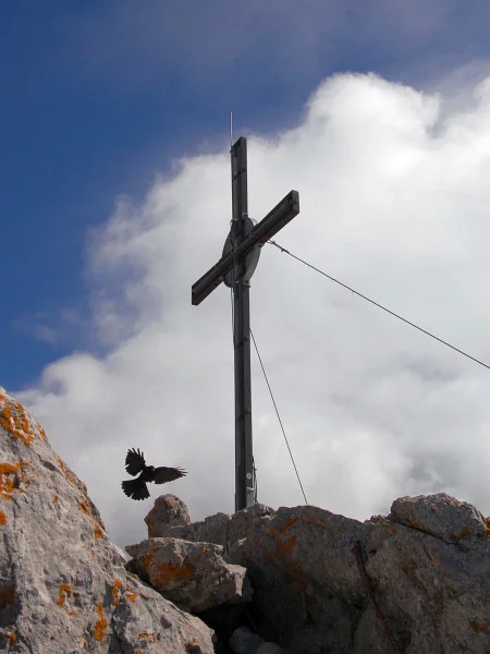 Foto kříže na Ellmauer Halt z vrcholu Ellmauer Halt