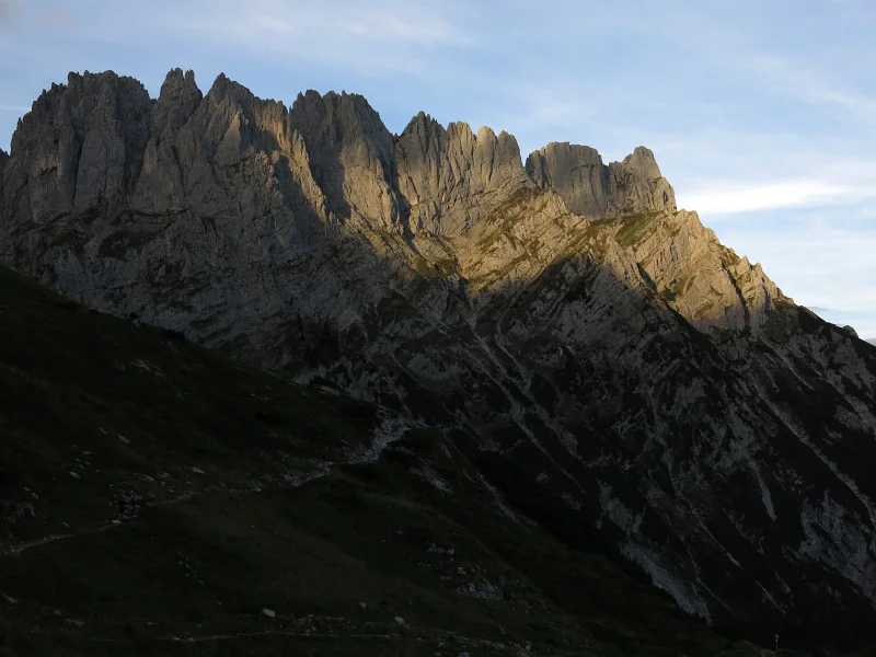 Ellmauer Halt. Nejvyšší bod je přesně uprostřed