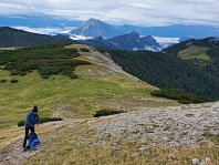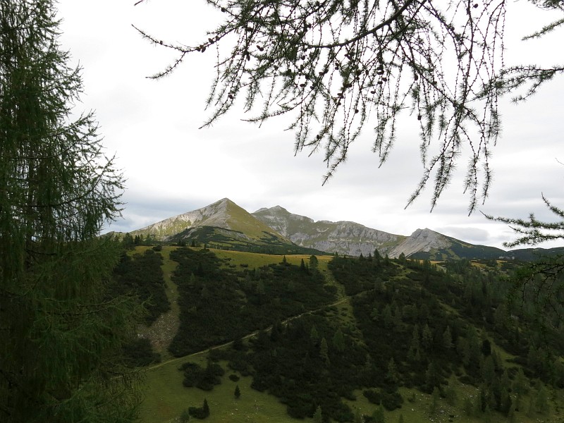 Cesta A+S: Vzadu Grimming, v popředí hřeben z Kleinmölbingu