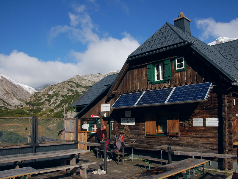 Voisthaler Hütte není naštěstí odkázána jen na tyto sluneční panely