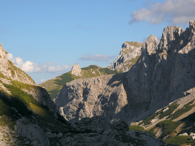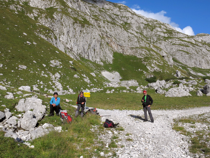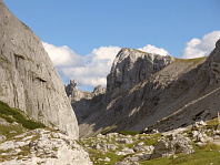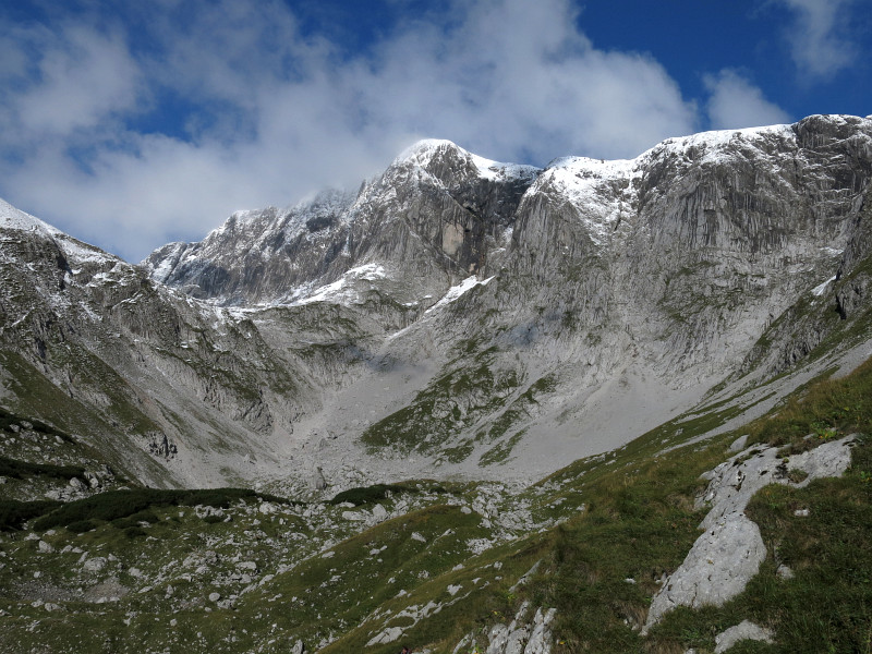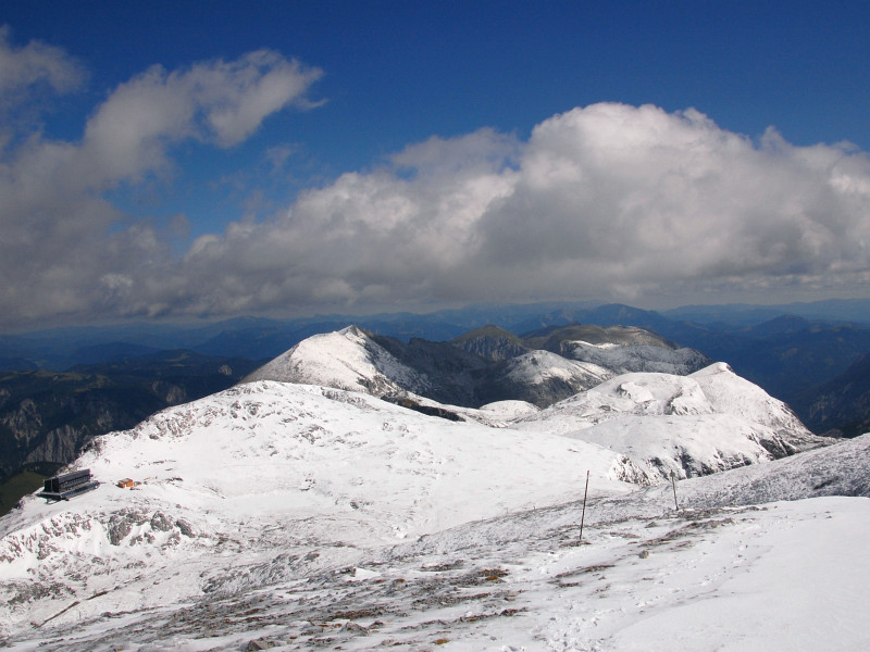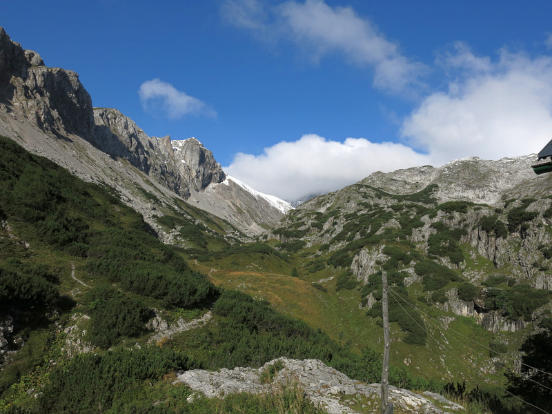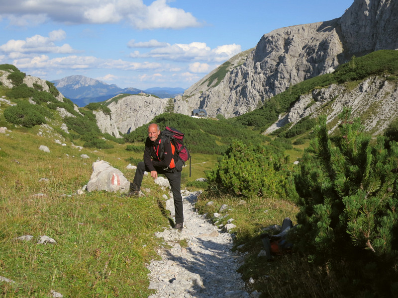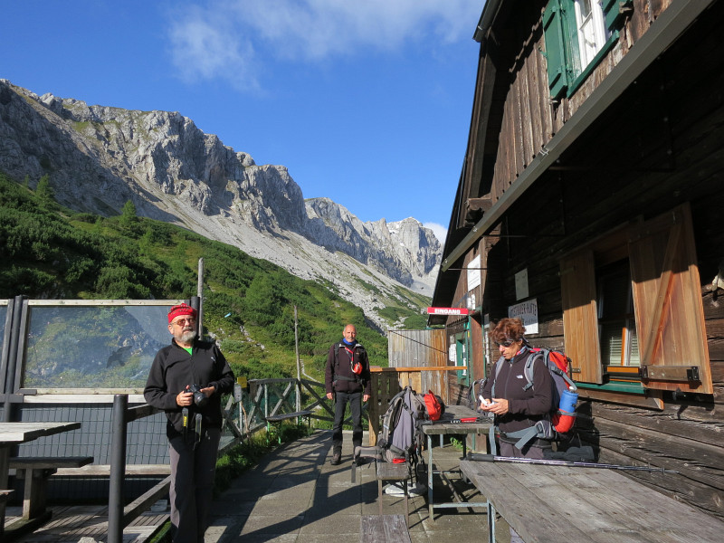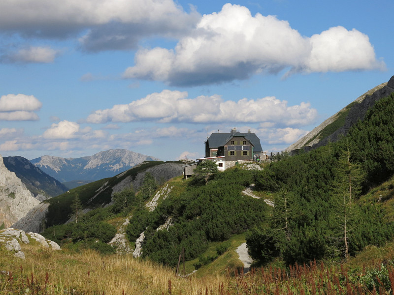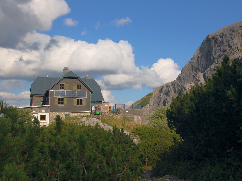 Vlevo vzadu Ötscher, vpravo od chaty Schiestlhaus je Eismauer