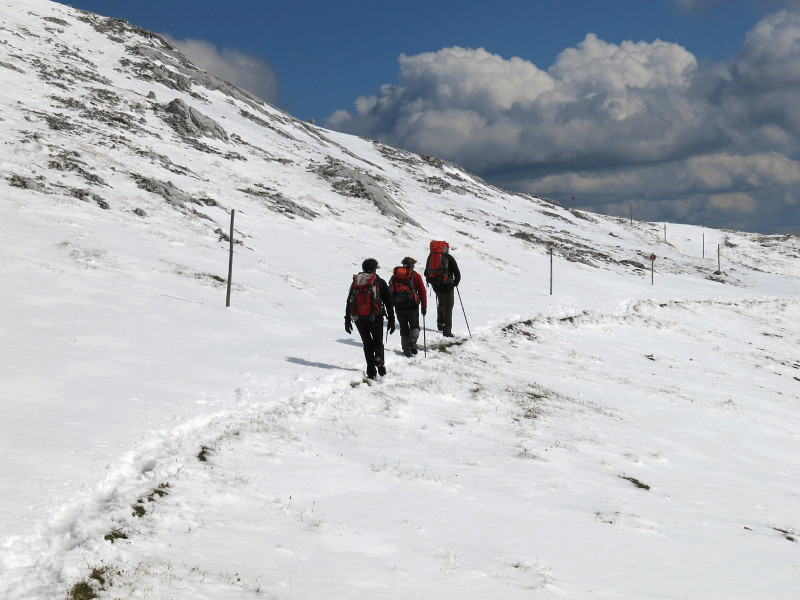 Volíme sněhovou jistotu. Jdeme na Hochschwab variantou Graf Meran Steig