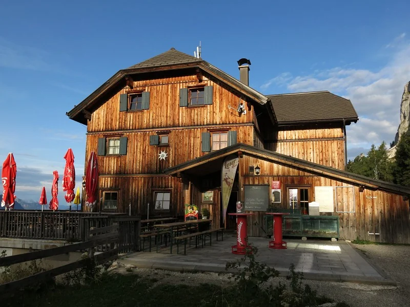 Je to opravdu Loserhütte. Vývěsní štít spatříte ze dvora